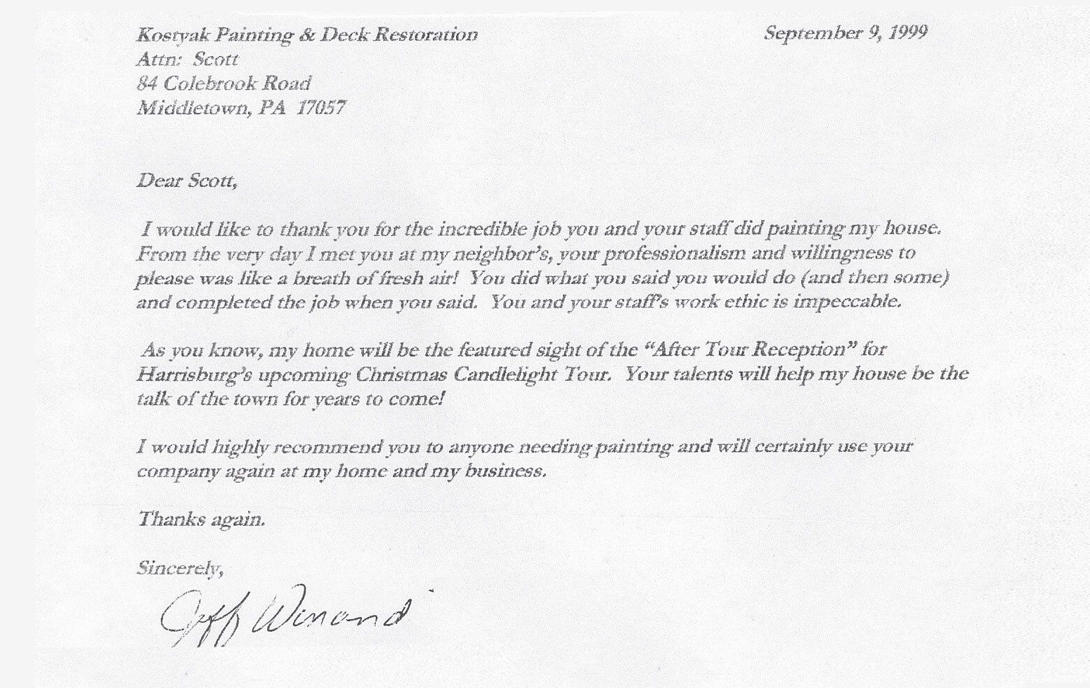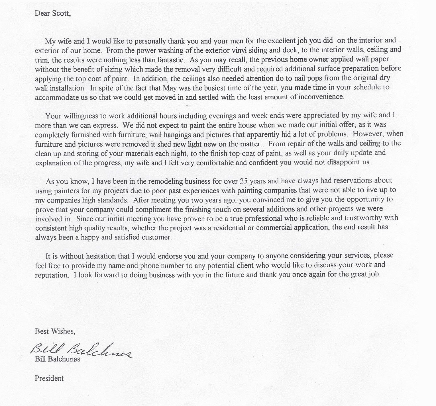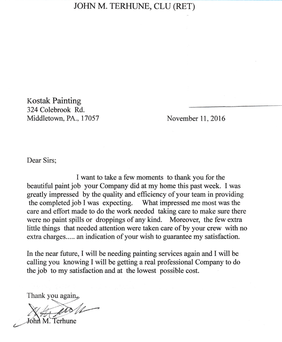 "I would like to thank you for the incredible job you and your staff did painting my house. From the very day I met you at my neighbor’s, your professionalism and willingness to please was like a breath of fresh air! You did what you said you would do (and then some) and completed the job when you said. You and your staff’s work ethic is impeccable.